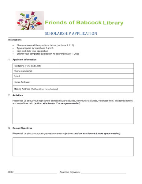 $1,000 Scholarship Funded by the Friends of Babcock Library