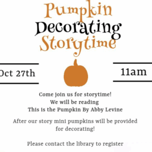 Pumpkin Decorating & Storytime Fun for Families! Pumpkin Decorating & Storytime here at Babcock Library Please ... 27 Oct 11:00 AM - 1:00 PM Knowlton Memorial HallAshford, CT